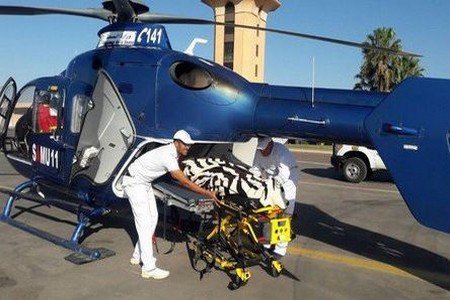 وحسب بلاغ لوزارة الصحة، فقد تم نقل هذه السيدة بواسطة المروحية الطبية للوحدة المتنقلة للإسعاف والإنعاش التابعة للمديرية الجهوية للصحة بالعيون، رفقة طاقم طبي وشبه طبي مختص في طب المستعجلات من العيون إلى المركز الاستشفائي الجامعي محمد السادس بمراكش.