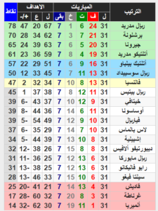 ترتيب الدوري الاسباني بعد الجولة الـ 31