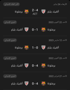 نتائج أخر 5 مواجهات جمعت برشلونة و بلباو